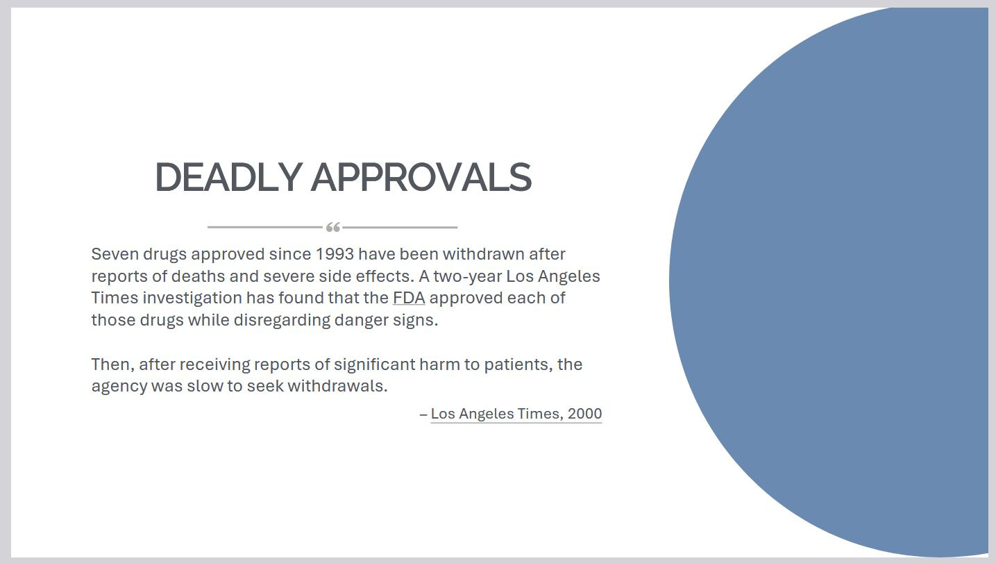 “One-third of new drugs had safety problems after FDA approval.” [NPR]