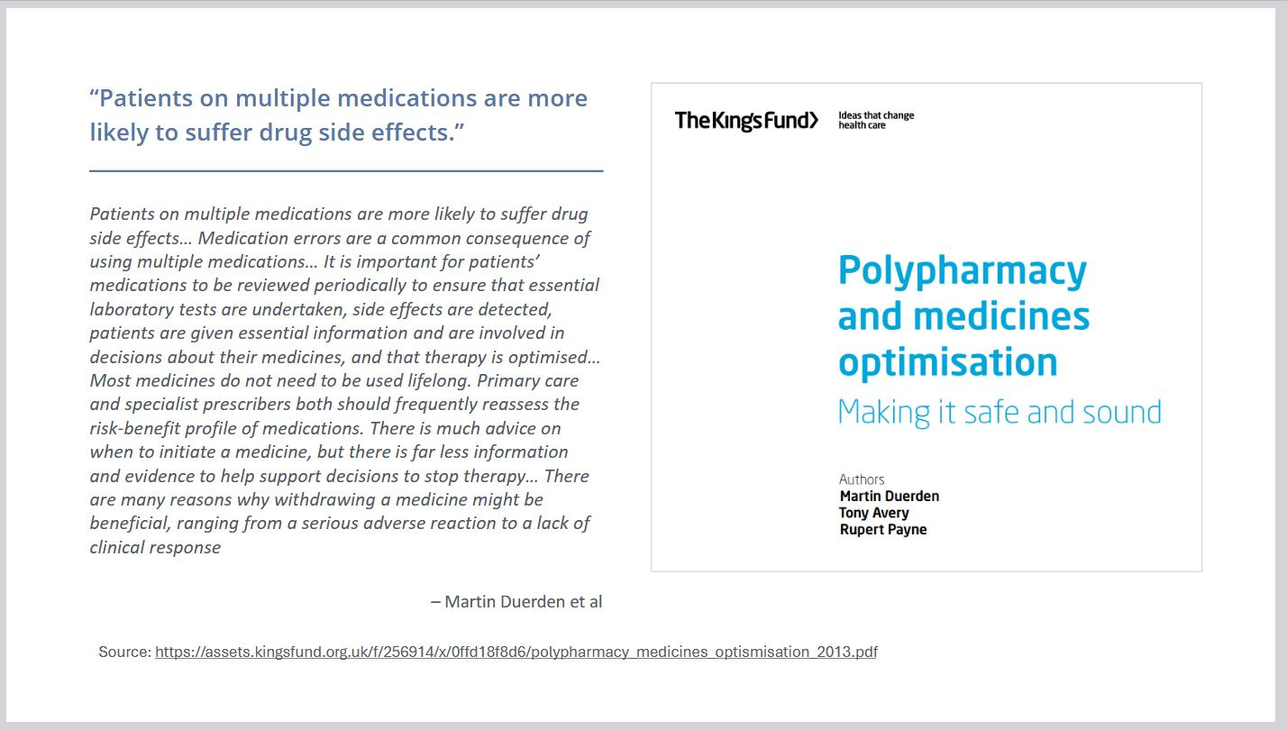 “Patients on multiple medications are more likely to suffer drug side effects.”