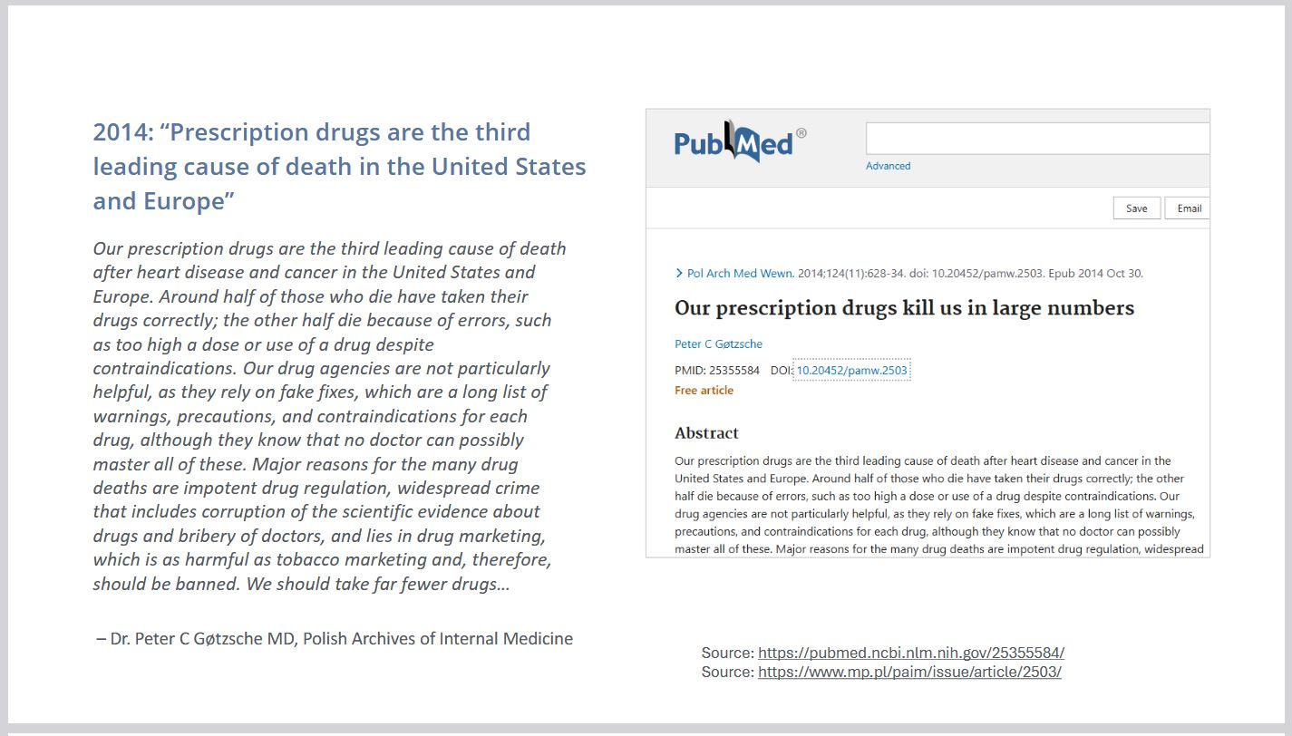In 2024, Dr. Peter Gøtzsche MD reported prescription drugs are the leading cause of death.