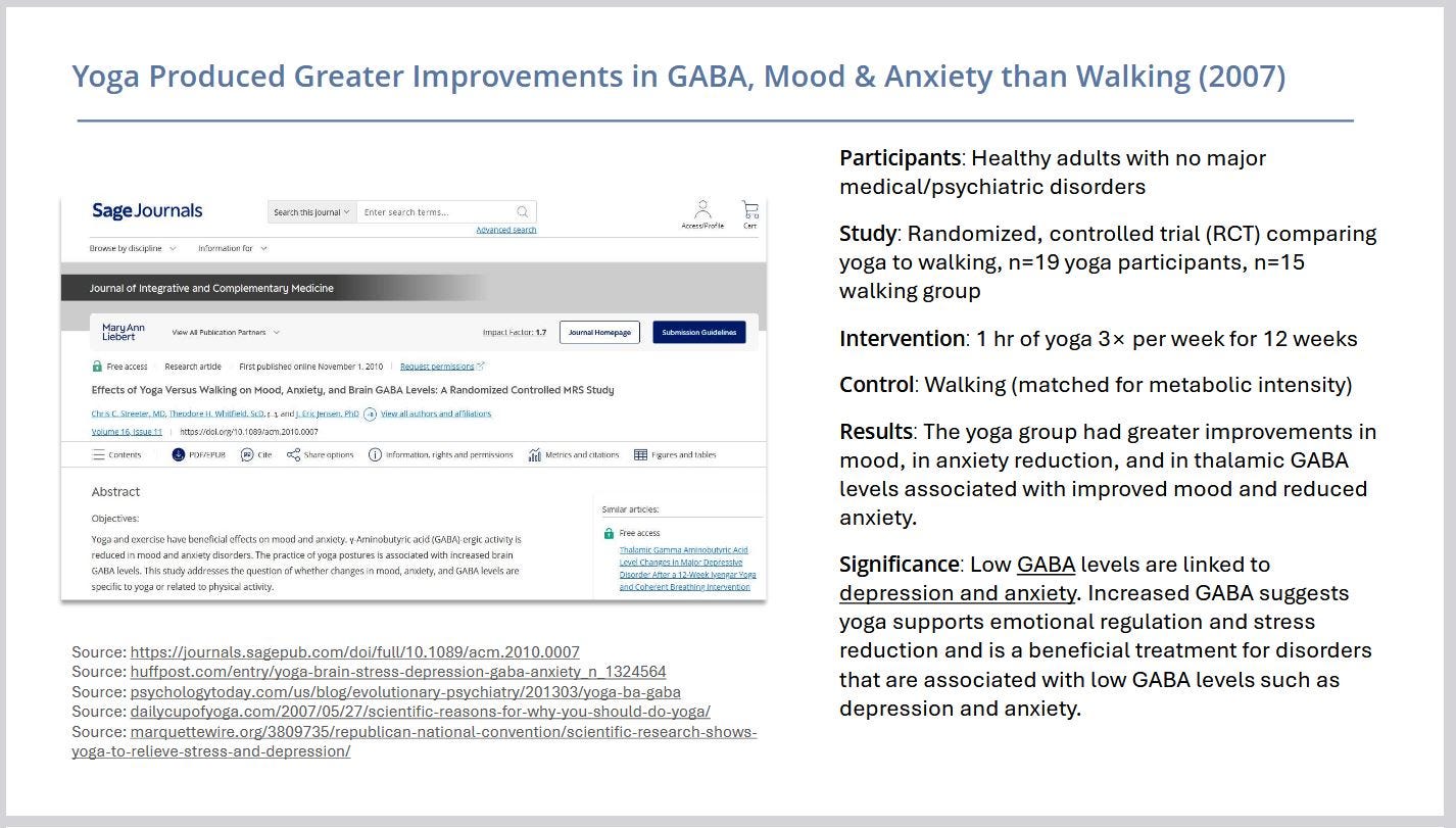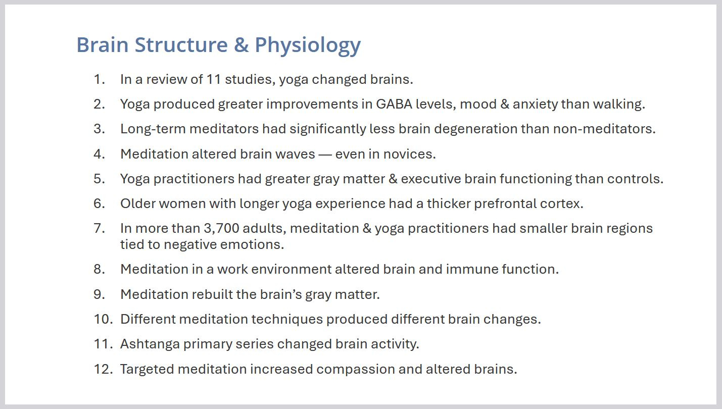 Years of dedicated work — alongside my colleague Jane and paid research interns — have gone into curating and organizing rigorous, verifiable research on the impacts of yoga and meditation. Members can access the material in the Research Hub.